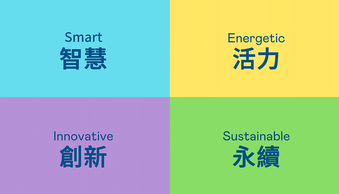 從穩重、信賴的九游会藍開創新色彩,注入象徵智慧藍、活力黃、創新紫、永續綠的品牌色及動態多變的幾何圖形,呼應不設限的「Possibilities」精神,代表多元的專業技術及領域,在碰撞中相互觸動、融合、延伸,持續激盪出更多新的可能性。